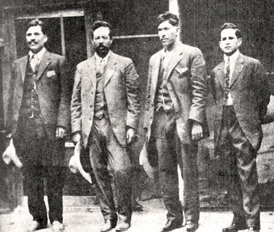 In true Robin Hood style, Villa broke up the vast land holdings of local hacendados and parceled the land out to the widows and orphans of his fallen soldiers. (This concept of everyone entitled to land ownership formed the basis of the present day ejido system.) Rather than use the government’s despised peso, Pancho Villa produced his own money, and any merchant who refused to accept this “new” currency faced the risk of being shot. Executions, often ordered on a whim, weren’t often carried out by Pancho himself. Instead, they were carried out by his friend Rodolfo Fierro, (far left in photo) best known by his nickname El Carnicero, or The Butcher. It seems that Pancho just couldn’t live by non-violent rules.